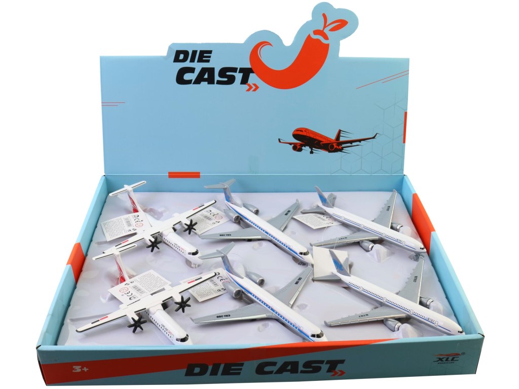 Letadlo kovové, 6 ks v display boxu, 20cm
