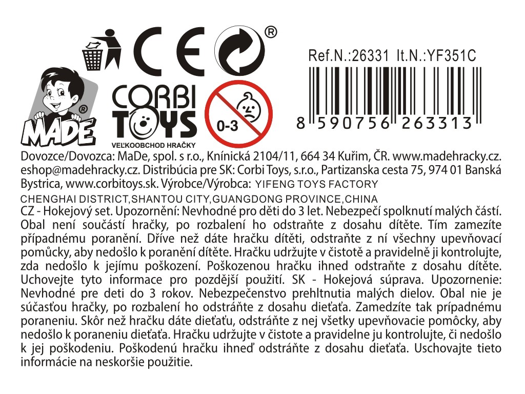 Hokejová souprava s pukem a míčkem, 90 cm
