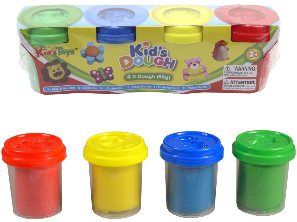 Balení obsahuje 4 ks modelín v zelené, modré, žluté a červené barvě