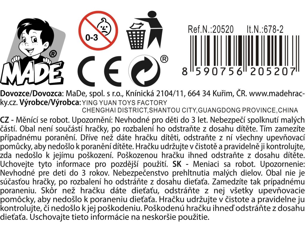Robot, 3 druhy, 18,5 x 18 x 7 cm