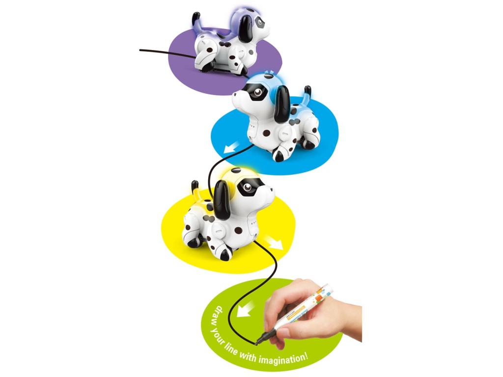 Pejsek, jezdící po namalované čáře